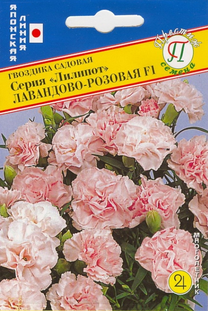 Гвоздика садовая Лилипот розовая F1 — многолетний карликовый сорт, не превышающий 25 см в высоту. Равномерное и обильное цветение продолжается круглое лето. Многочисленные махровые цветы имеют в роспуске 2−3 см. Лепестки алые, волнистые, с резными краями. Растение размножается путем посева семян в рассадные емкости с прорастанием на 7−10 день — при условии проращивания под пленкой при температуре 18−20. Окрепшие саженцы пикируют и в начале лета переносят на солнечный участок, соблюдая ритм 20−25 см. Прищипывание побегов не требуется.