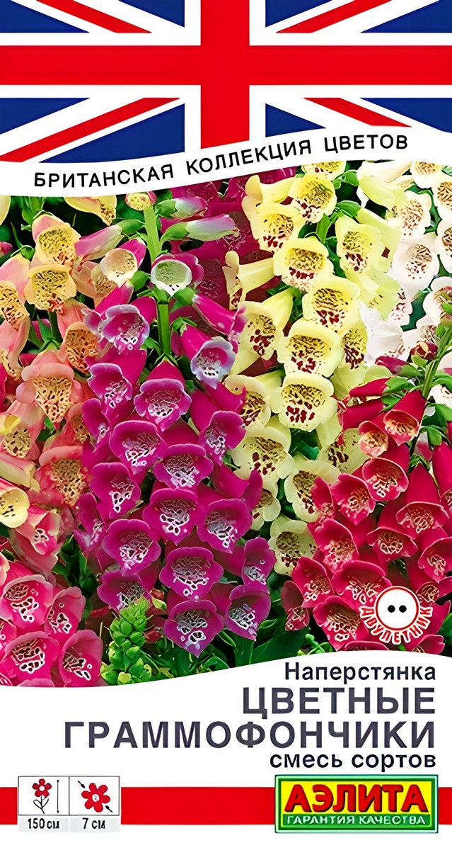 Красочная смесь эффектного величественного двулетника. Ее особенностью является горизонтальное расположение крупных цветков относительно побегов, что придает растению неповторимую декоративность. Наперстянка пластична к условиям освещенности. Приспосабливается к полутени, но цветки мельчают. Предпочитает рыхлые почвы, при застое весенних вод цветение может не наступить. Ввиду морозостойкости укрытие на зиму не требуется, но при мульчировании лучше развивается и богаче цветет. Высота прямостоячих побегов может превышать 130-150 см, цветки 6-7 см. Все виды наперстянок ядовиты, уход за растением проводите в перчатках! Семена практически не заделывают, слегка мульчируют песком и поддерживают во влажном состоянии до всходов. С появлением двух пар настоящих листьев сеянцы пикируют в отдельные горшочки. При посеве в открытый грунт в июне–июле цветет на 2-й год. Возможен подзимний посев.