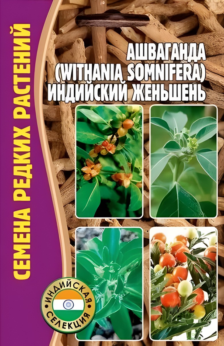 Ашваганда, или индийский женьшень (лат. Withania somnifera) – растение-многолетник из семейства паслёновых. Представляет собой вечнозеленый кустарник высотой до 1 метра и шириной до 0,5 метров. Предпочитает хорошо дренированные почвы, но в целом к составу и кислотности почв нетребовательна. Солнцелюбива. Место для посадки лучше выбирать ветрозащищенное. Не очень холодостойка, но может выращиваться как однолетник, цветущий и плодоносящий в первый же год после посадки (в таком случае выращивается сначала рассада). Также отлично подходит для комнатного выращивания. При выращивании дома Ашваганда будет цвести несколько раз в год.