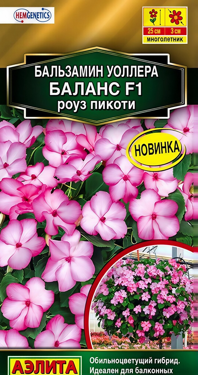 Уникальная серия бальзаминов «Баланс F1» – это настоящая сказка у вас дома, словно облако разноцветных бабочек! Гибриды от компании Hem Genetics (Нидерланды) отличаются ранним и обильным цветением. Нежные цветки диаметром 2-3 см не опадают длительное время. Кустики высотой 15-25 см, компактные, хорошо разветвленные. Бальзамин неприхотлив. При недостатке освещения цветение не ослабевает, а стебли не вытягиваются в длину. Растения идеально подходят для высадки в балконные контейнеры, для украшения низкорослых клумб и окаймления садовых дорожек.