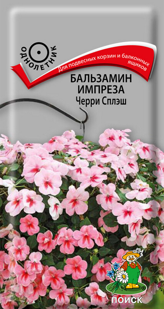 Роскошная форма бальзамина (импатиенса) для подвесных корзин и вазонов - образует цветущий шар. Многочисленные полумахровые цветки никого не оставят равнодушными. Растение сильно ветвится, формирует побеги длиной 30-35 см. Непрерывное цветение с июня до заморозков. Рекомендуется выращивать в местах с рассеянным солнечным светом. Посев в марте, семена слегка вдавливаются в грунт, либо присыпаются грунтом сверху слоем не более 2 мм. Прорастание: 10-15 дней при температуре 20-25 С. Пикировка: на стадии 2-3 настоящих листьев в горшки диаметром 6-8 см, после освоения корнями растения этого объёма, саженцы переваливаются в горшки 0,5-0,8 литра. В процессе выращивания рассады необходима досветка 14-16 часов. Начало цветения: на 15-16 неделе после посева семян. При выращивании в вазонах на одно взрослое растение потребуется от 5 литров грунта. Подкормка комплексным минеральным удобрением с микроэлементами.