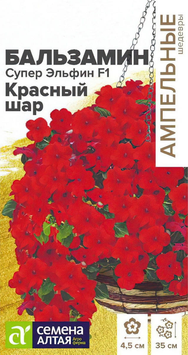Бальзамин Супер Эльфин F1 Красный шар, 10 шт. Ампельные Шедевры