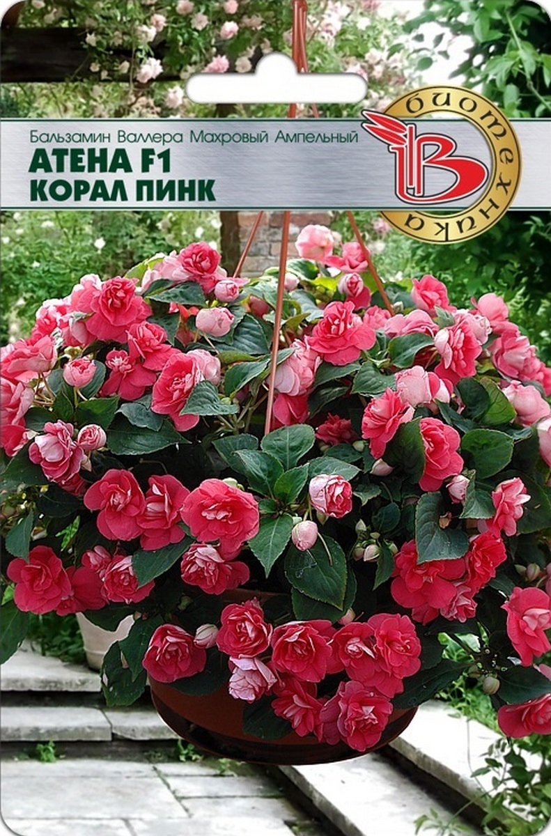 Популярное комнатное растение, которое все чаще выращивают как летник. Athena F1 - роскошная форма бальзамина для подвесных корзин и вазонов образующая роскошный, цветущий шар. Многочисленные полумахровые или махровые цветки никого не оставят равнодушными. Растение сильно ветвится, формирует побеги длиной 30-35 см. Серия прекрасно подходит для сада и контейнерной культуры. Непрерывное цветение с июня до заморозков. Посев на рассаду под стекло февраль – апрель. Семена слегка вдавливаются в грунт, либо присыпаются грунтом сверху слоем не более 2 мм. Высадка рассады в грунт производится после установления стабильной тёплой погоды. Предпочитает защищённые от порывистого ветра тенистые места с повышенной влажностью почвы, на открытых солнечных местах верхние листья могут гореть. Нуждается в регулярном поливе, подкормки проводят через 7-10 дней после высадки в грунт и по мере надобности. Цветение наступает примерно через 12 недель.