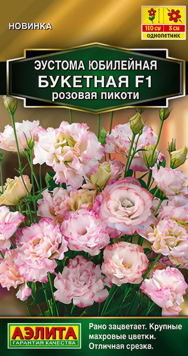 Воздушная эустома – идеальный цветок для букета. Современный срезочный гибрид американской селекции – растение стройное, высотой 90-110 см, с зелено-сизой листвой восковой фактуры. Верхняя часть стебля сильно ветвится и образует массу бутонов, которые раскрываются поочередно. Цветки густомахровые, диаметром 6-8 см, с широкими лепестками, на крепких, длинных цветоносах. Гибрид эустомы восхищает красивыми цветками, а также удивляет необыкновенной стойкостью букетов в вазе. Растение подходит для выращивания в открытом грунте, в высоком пленочном тоннеле и в теплице (круглогодично). Семена в гранулах! Гранулы располагают на поверхности почвы, не заделывая их, хорошо увлажняют из распылителя. При попадании влаги на гранулу оболочка должна раствориться. Посевы накрывают стеклом для сохранения постоянной влажности до полных всходов. Посевам требуется досветка.