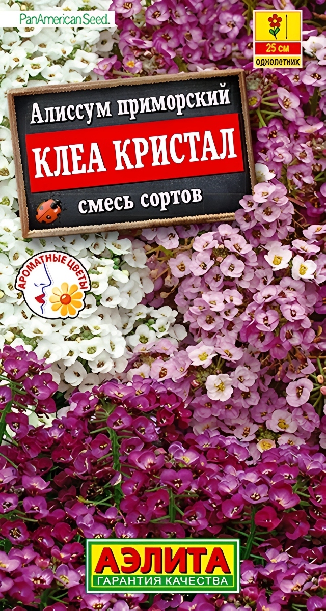 Полноцветная смесь неприхотливого летника, включает четыре расцветки. Формирует симпатичные, ровные, низкорослые (10 см) кустики. Мелкие цветки, собранные в плотные кистевидные соцветия, источают сильный медовый аромат. Славится высокой декоративностью, которая отмечена официальной наградой – медалью качества европейской организации производителей семян. Алиссум неприхотливый, не требовательный к почвам, холодостойкий, предпочитает солнечные места. Идеально подходит для окантовки клумб и рабаток, используется на каменистых горках.
