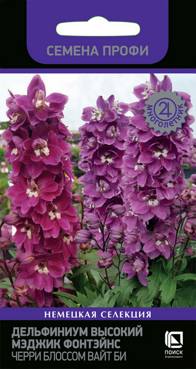 Дельфиниум высокий Мэджик Фонтэйнс Черри Блоссом Вайт Би, 10 шт. Семена профи