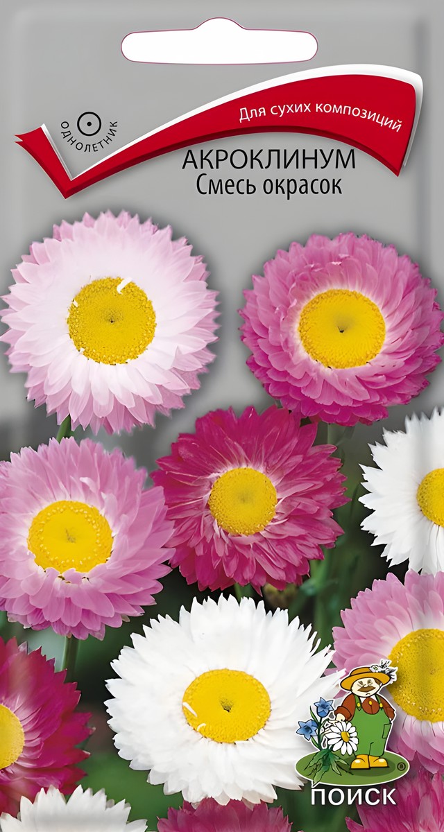 Относится к группе сухоцветов. Красивые белые и розовые цветки похожи на маргаритки, сидят на тонких стеблях высотой до 50 см. Лепестки цветов по структуре напоминают сухие шуршащие чешуйки. Используют в зимних букетах. Для засушивания цветы срезают почти раскрывшимися.