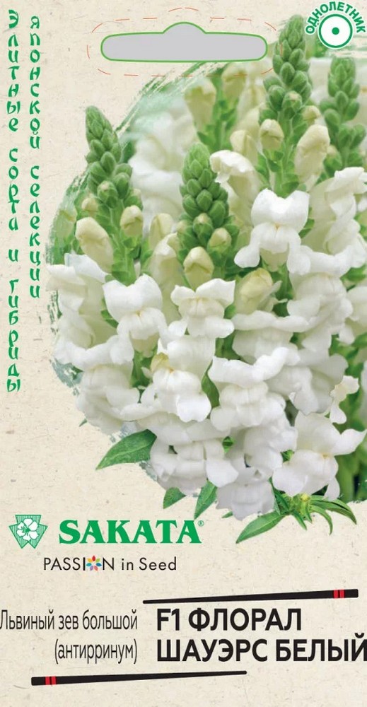 Великолепный крупноцветковый срезочный сорт. Декоративное растение из семейства Норичниковые, культивируемое как однолетник, высотой 70-90 см. Цветет с конца июня до поздних заморозков. Цветки собраны в кистевидные соцветия белой окраски. Холодостоек, светолюбив, к почвам нетребователен, в засушливый период нуждается в поливе. Выращивают рассадным способом. Для получения дружных всходов семена необходимо стратифицировать при температуре +10оС. Посев проводят с начала марта до середины апреля, поверхностно, не заделывая, в ящики с субстратом и ставят на свет. Всходы появляются через 8-12 дней. Рассаду высаживают во второй половине мая с расстоянием между растениями 35-40 см. Используется для групповых посадок и цветников, а также для получения высококачественной срезки (львиный зев стоит в воде до двух недель).
