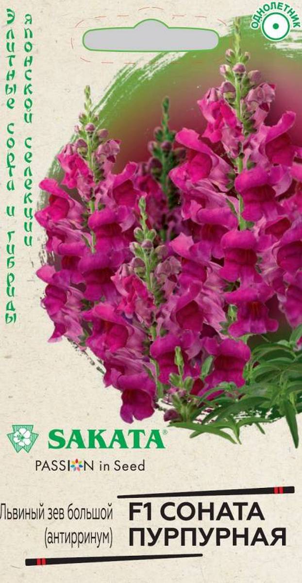 Интересные цветы добавляют уюта, прелести и моментально оживляют даже самый унылый и невзрачный участок в саду. Львиный зев — стильная культура, имеющая невероятно изысканный внешний вид, расцветку и форму. Гибрид F1 Соната пурпурная раскрасит сочными, красками любую, даже самую скучную территорию, создавая нереальную красоту с конца июня до поздних заморозков и распространяя вокруг восхитительный аромат. На пирамидальных, хорошо ветвящихся кустиках располагаются опушенные листья ланцетовидной формы и большое количество пышных соцветий. Антирринум холодостоек, светолюбив, к почвам нетребователен, в засушливый период нуждается в поливе. Выращивают рассадным способом. Для получения дружных всходов семена необходимо стратифицировать при температуре +10оС. Посев проводят с начала марта до середины апреля, поверхностно, не заделывая, в ящики с субстратом и ставят на свет. Всходы появляются через 8-12 дней. Рассаду высаживают во второй половине мая с расстоянием между растениями 20 см.