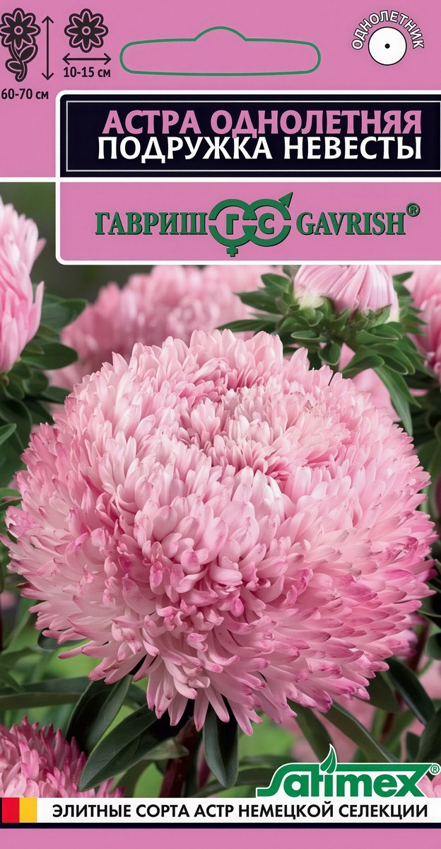 Очаровательная красавица с особым шармом крупных густомахровых соцветий пудро-розового цвета. Одна из самых красивых букетных астр, долго остается свежей в вазе. Высота растения 60-70 см Соцветия сферические и полусферические, диаметром 10-15 см. Выращивают рассадным способом. Для цветения в августе – сентябре семена высевают в апреле начале мая. Семена не заглублять! Прорастание при температуре 15-16°С. Пикируют в фазе 2-3 настоящих листочков в отдельные горшки. Оптимальная температура выращивания 14-16°С. В открытый грунт рассаду высаживают в возрасте 40-50 дней. По схеме 15х20 см. Высокое качество и плотность цветков позволяют получать профессиональную срезку для букетов.