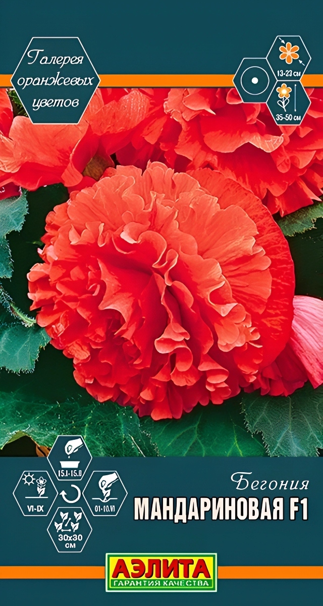 Клубневая бегония с самым крупным цветком в мире американской селекции от компании PanAmerican Seed. На крепких растениях, вы сотой – 35-50 см и шириной – 25-30 см, располагаются роскошные гофрированные цветы Ø 13-23 см. На фоне густой изумрудной листвы ярко-оранжевые цветки смотрятся потрясающе! Бегония украсит собой любую клумбу и цветочную композицию. В конце вегетации формируются клубни, которые можно сохранить зимой в прохладном помещении (температура не выше +10 °С) и использовать при посадке в следующем сезоне.