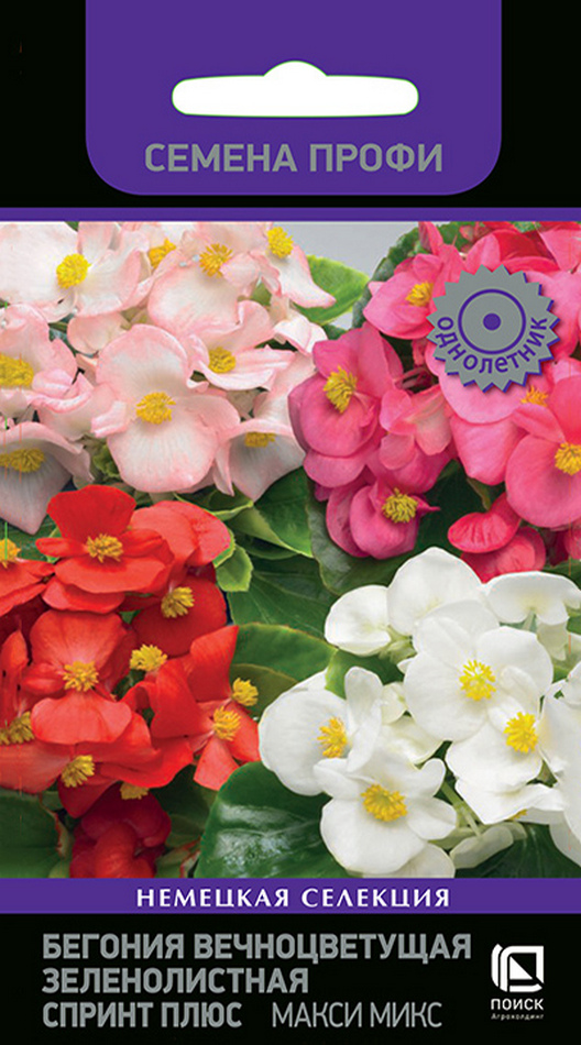 Бегония вечноцветущая зеленолистная Спринт Плюс Макси Микс, 10 шт. Семена профи