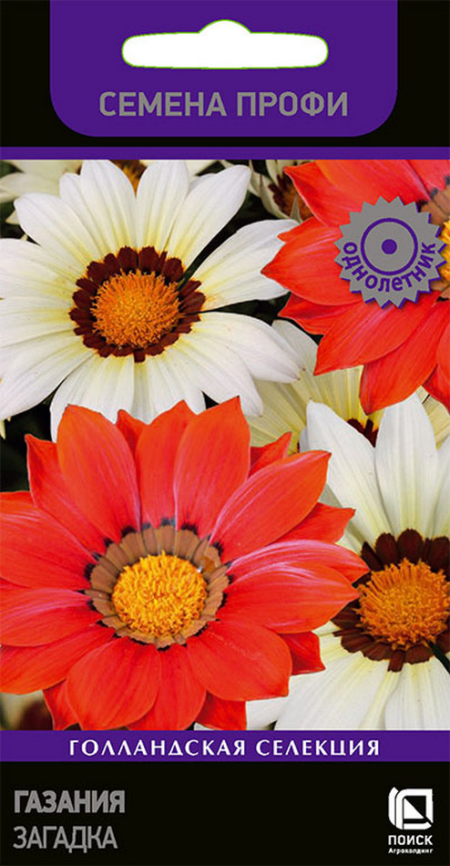 Серия газании с очень ранним началом цветения. Отличается компактностью куста – розетка листьев плотная, не разваливается. Яркие цветы этой серии резко контрастируют с серебристо-белой листвой. Растения нейтральны к длине светового дня. Цветение длительное, отцветшие цветки постоянно сменяются новыми. Высота растения 20 см., диаметр цветков 7-8 см. Газания очень отзывчива на подкормки комплексным минеральным удобрением с содержанием хелатного железа и магния. Это стимулирует более длительное и яркое цветение.