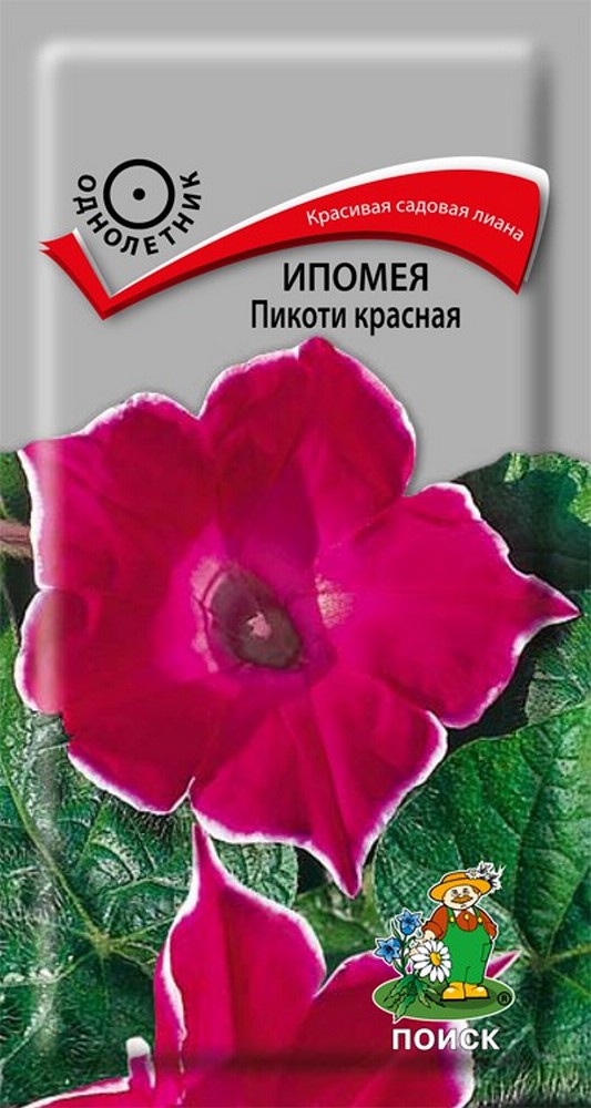Ипомея Пикоти красная - одна из самых красивых садовых лиан. Стебли достигают 2,5 м длины. Листья крупные, сердцевидные. Цветы воронковидной формы яркие красно-малиновые с тонкой белой каёмкой по краю венчика, диаметром около 10 см. Период цветения с июля по октябрь. Используются для вертикального озеленения и оформления цветников различного назначения. Растение засухоустойчивое, предпочитает солнечные места с рыхлой, плодородной почвой. Посев семян на рассаду производят в торфяные горшки в апреле, в открытый грунт в мае. Перед посевом - семена предварительно замачивают в течение 24 часов. При температуре почвы +20°C первые всходы появляются через 6-14 дней.