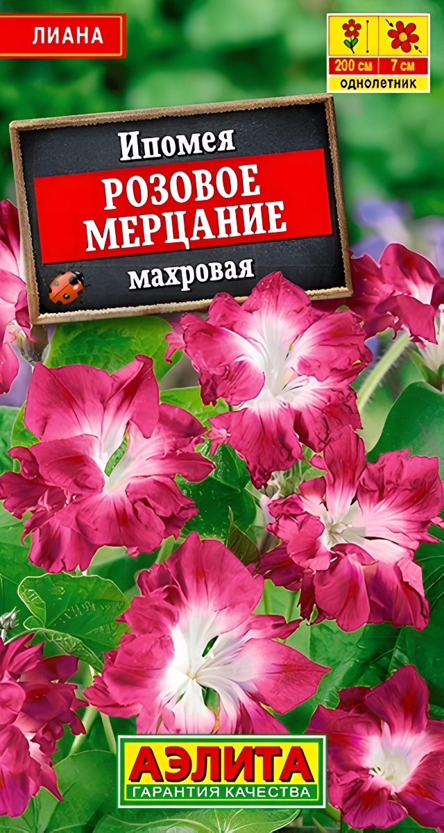 Быстрорастущая однолетняя лиана с эффектными махровыми цветками. Способна за короткий срок подняться на высоту до 200 см и создать великолепный цветущий занавес. Многочисленные цветки 5-7 см появляются на растении каждый день и остаются раскрытыми дольше, чем у сортов с простыми цветками. Ипомея тепло- и светолюбивая, не выносит застоя воды. Идеально подходит для озеленения беседок, пергол, навесов, декорирования заборов и для выращивания в садовых контейнерах. Ипомея предпочитает дренированные почвы без избытка органики. Посев на рассаду предварительно замоченными семенами, гнездами по 2-3 шт., на глубину 1-2 см. Растения высаживают в грунт с комом почвы. В южных регионах возможен прямой посев в мае.