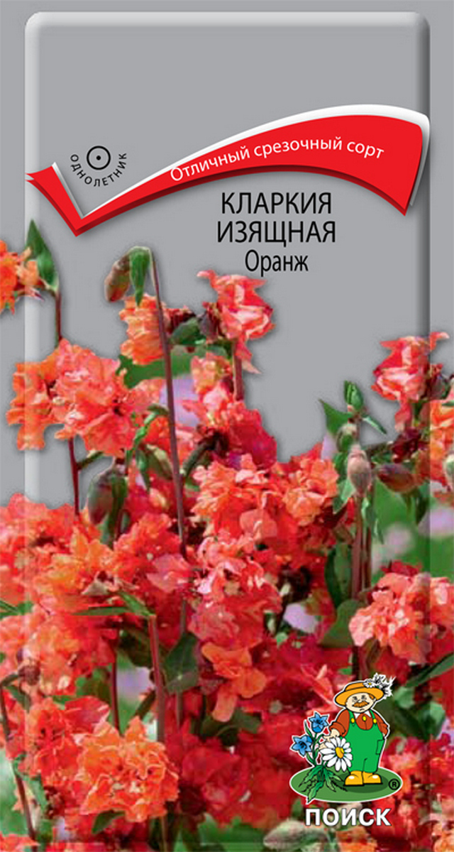 Бутоны по очереди распускаются на прямостоячих побегах высотой примерно 60 см. Цветёт с начала лета до начала осени снизу вверх по ветвям. Цветы напоминают маленькие розы. Кларкия Изящная оранжевая любит солнечный свет, устойчива к морозам. Почвы необходимо подбирать лёгкие, с наименьшим содержанием органики. Сеют растение в мае на стационарное место. При температуре + 18 °C ростки могут появиться через 7-15 суток. Необходимо проредить сеянцы, выдержав расстояние 20 см между цветами. Чтобы получить компактные кустики с обильным цветением, необходимо прищепнуть верхушки растений на высоте около 11–12 см.