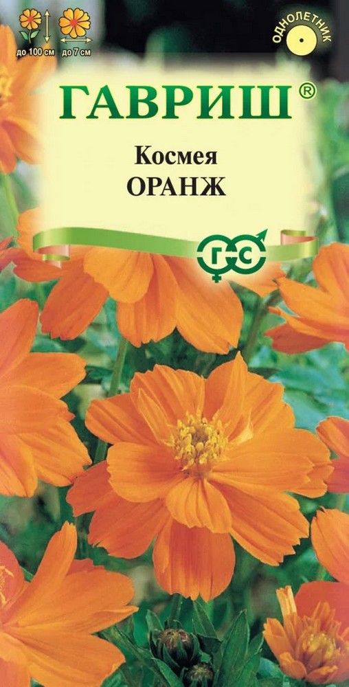Очаровательное однолетнее растение из семейства Астровые, высотой до 100 см. Крупные (до 7 см в диаметре), махровые, ярко-оранжевые цветки, покрывают сильноветвящийся кустик с июля до поздней осени. Космея холодостойка и светолюбива, относительно засухоустойчива. Предпочитает рыхлые, умеренно плодородные почвы.