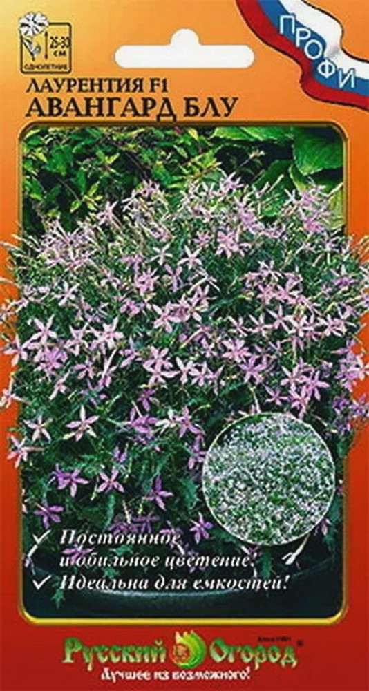 Впервые - лаурентия из семян! Постоянно и обильно цветущий гибрид с невероятным количеством цветков. Великолепна в горшках и контейнерах, исключительно подходит для выращивания в подвесных корзинах, где ее зведчатые цветки и красивая листва создают поистине сказочное зрелище. Характеризуется долгим периодом цветения и при срезке быстро зацветает вновь. 25-30 см.