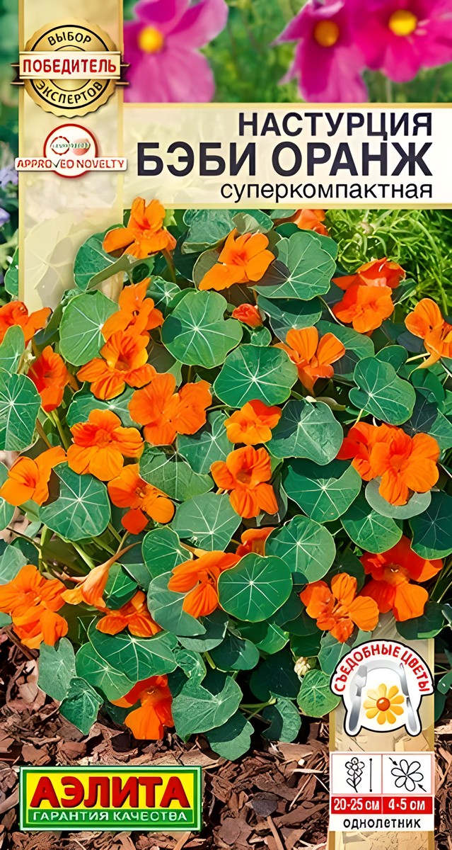 Настурция Бэби оранж, суперкомпактная, 4 шт.