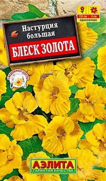 Красивая вьющаяся настурция из серии гибридов GLEAM (Блеск). Формирует хорошо облиственные побеги длиной около 150 см с эффектными махровыми цветками диаметром 5-6 см. Цветки ароматные. Выращивается на опорах, по которым необходимо направлять плети, или в ампельной культуре. В цветниках растет как почвопокровное растение, приобретая стелющуюся форму. Растения теплолюбивые, обильно цветут до первых заморозков. Предпочитают солнечное местоположение и легкие, дренированные почвы среднего плодородия. На богатых почвах «жируют», наращивают зеленую массу в ущерб цветению. Отзывчивы на подкормки фосфорно-калийными удобрениями.