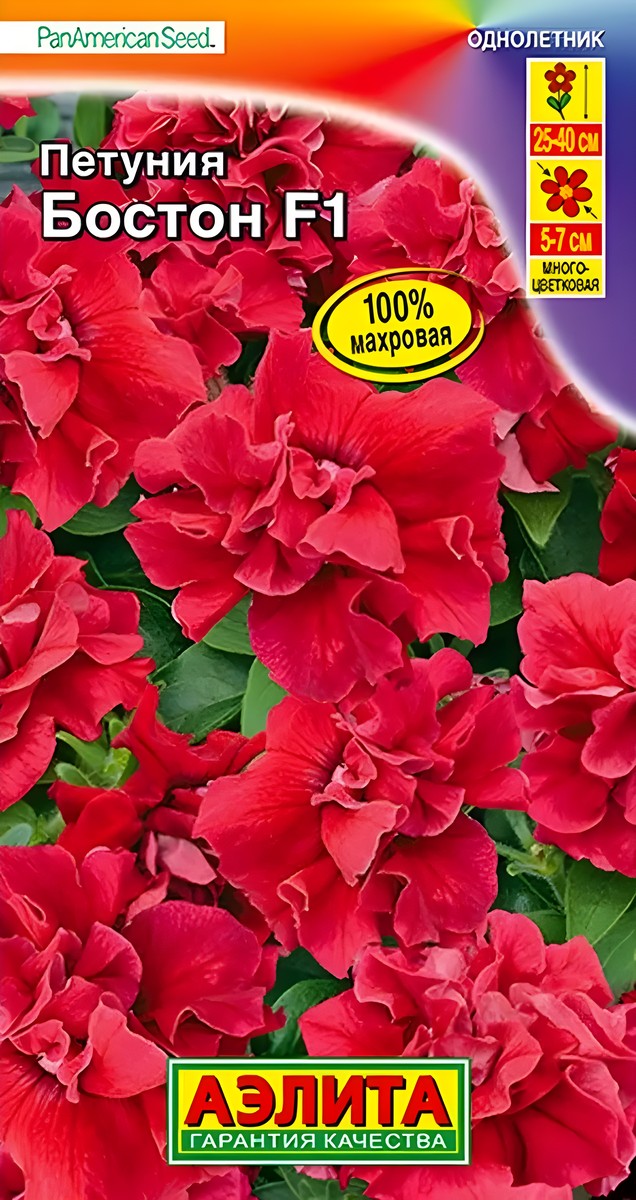 100% махровая. Гибридная обильноцветущая петуния Бостон формирует компактный куст высотой до 40 см, с изящными махровыми цветками Ø 5-7 см. Цветков образуется так много, что кустик напоминает цветущее облачко. Гибрид отличается прекрасным внешним видом, ранним, продолжительным и очень дружным цветением, неприхотливостью и устойчивостью к неблагоприятным погодным условиям. Незаменим в оформлении клумб, бордюров, вазонов, кашпо и балконных ящиков.