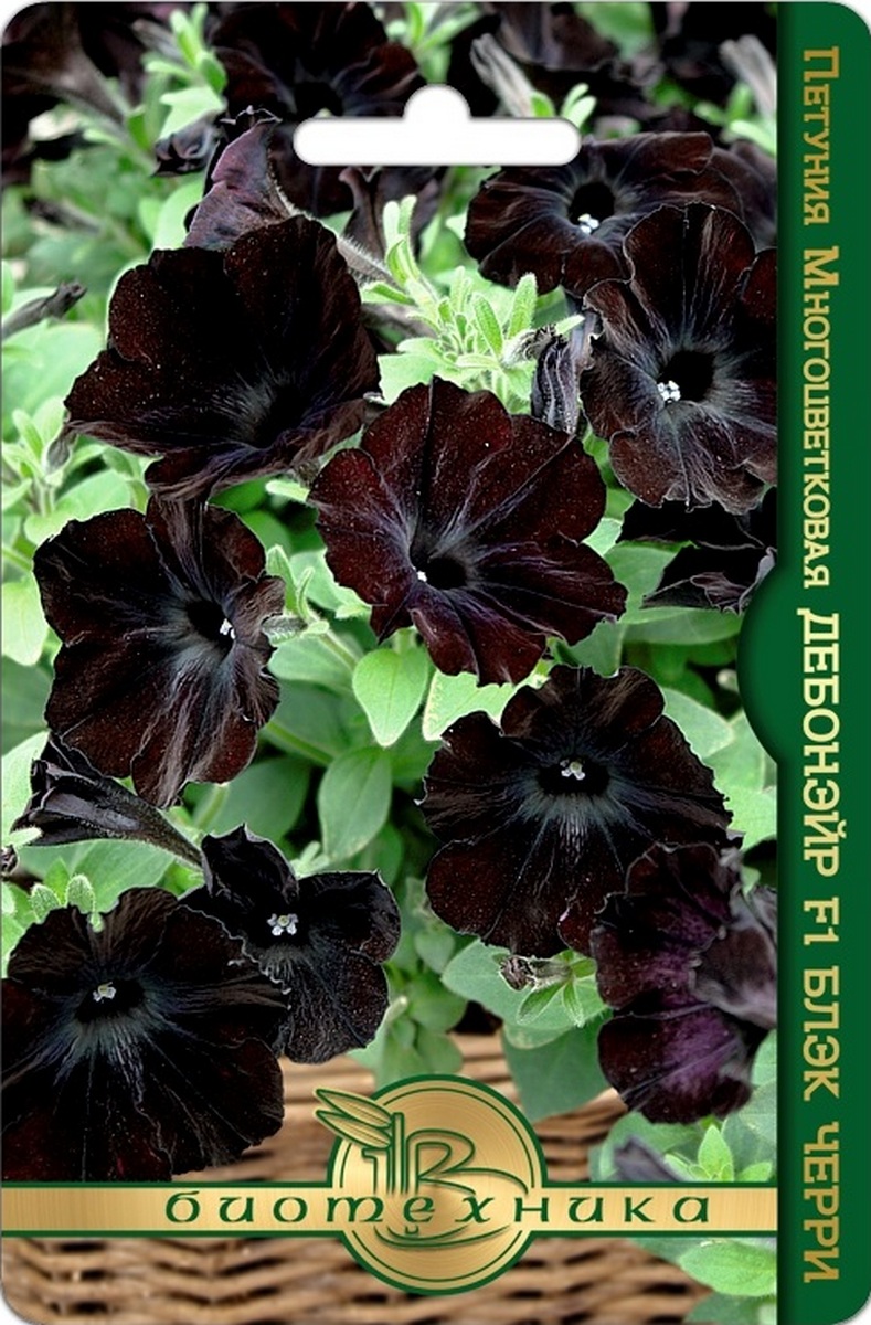 Растения образуют очень плотные, шарообразные кусты, высотой 25-38 см, диаметром 25-30 см, усыпанные многочисленными цветками, диаметром 6-8 см. с необычной окраской. Петунии F1 Дебонэйр БЛЭК ЧЕРРИ обладают уникальным бархатно-черным цветом цветков, практически не встречающихся у петуний. Серия Дебонэйр объединяет петунии с уникальными расцветками цветов, сильным ростом и способностью формировать шарообразную форму куста, предназначенных как для вазонов, так и для декорации изысканных клумб. Высадка: посев на рассаду производится с февраля по март. Драже высеваются в рассадные ящики на поверхность подготовленного стерильного грунта. Драже грунтом не присыпаются. Очень важно следить, чтобы высеянные драже были постоянно увлажнены и не пересыхали.