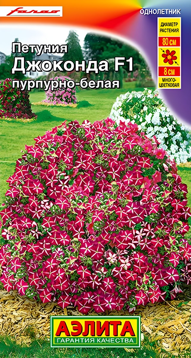 Семена Петуния Джоконда F1 пурпурно-белая, 5шт. Петуния итальянской селекции компании Farao с непревзойденными характеристиками. Гибрид формирует мощные кусты высотой 25-30 см с интенсивным ветвлением. В ширину они достигают 60-80 см, но при регулярных подкормках вырастают значительно большего размера. Цветки с эффектным «звездным» рисунком не травмируются дождями и сильным ветром. Украсит собой клумбы, рабатки, подвесные корзины и садовые вазы. Гранулы располагают на поверхности почвы, не заделывая их, хорошо увлажняют из распылителя. При попадании влаги на гранулу оболочка должна раствориться. Посевы накрывают стеклом для сохранения постоянной влажности до полных всходов. Февральским посевам требуется дополнительная подсветка.