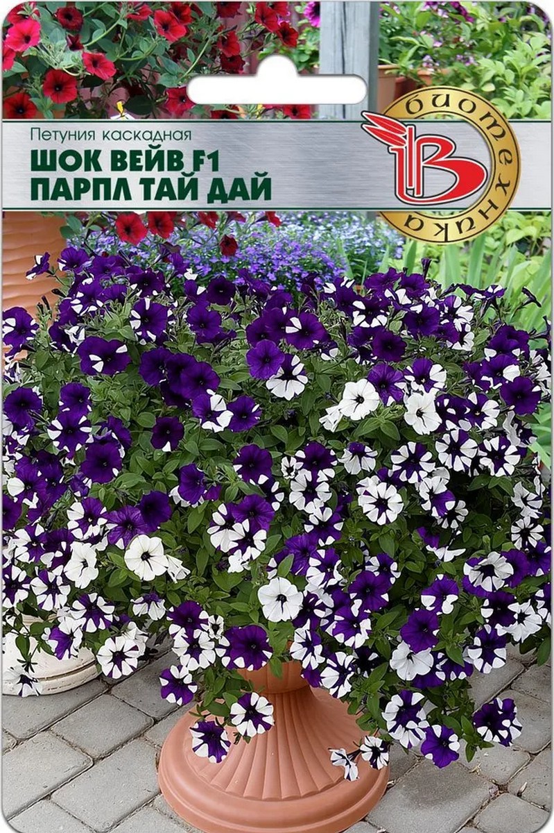------Петуния каскадная Шок Вейв F1 Парпл Тай Дай, 5 шт. Биотехника