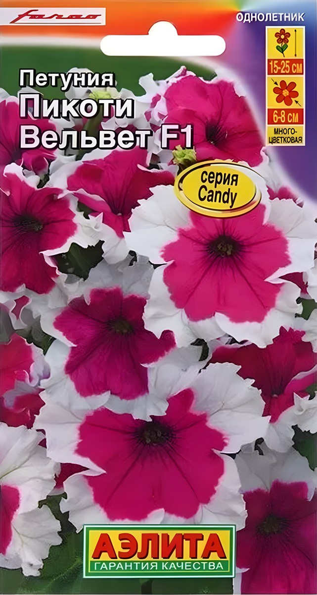 Гибридная обильноцветущая петуния с ранним и продолжительным цветением. Формирует кустик до 35 см в диаметре, сплошь усыпанный цветками диаметром 6-7 см так, что они почти полностью скрывают листву. Растения плотные, хорошо ветвящиеся, с крепкими побегами. Хорошо переносят воздействия непогоды в виде дождя и снега, неприхотливы. Отлично подходят для выращивания в любых садовых контейнерах, подвесных корзинах и кашпо, великолепны в ковровых посадках на клумбах и в бордюрах. Посев семян на рассаду. Семена в гранулах! Гранулы располагают на поверхности почвы, не заделывая их, хорошо увлажняют из распылителя. При попадании влаги на гранулу оболочка должна раствориться. Посевы накрывают стеклом для сохранения постоянной влажности до полных всходов. Февральским посевам требуется дополнительная подсветка. Сеянцы пикируют в фазе одного-двух настоящих листьев. В фазе пяти-шести листьев проводят формирующую прищипку.