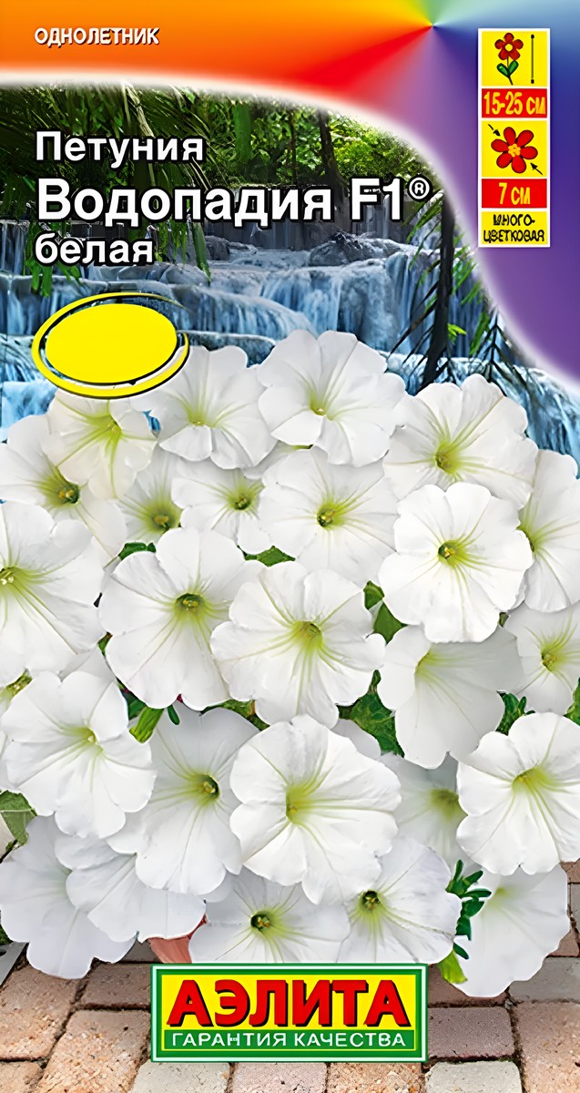 Серия многоцветковых петуний каскадного типа, которая отличается совершенно новой полуампельной формой. Уникальность этих гибридов в том, что новые цветоносные побеги образуются без прищипки в пазухах листьев в середине куста, не оставляя пустот. Растения формируют пышные кус тики, высотой 15-25 см. Поникающие побеги длиной до 70 см, полностью усыпаны яркими насыщенными цветками Ø 7 см и спускаются восхитительным водопадом. Гибриды устойчивы к повышенным температурам и неблагоприятным погодным условиям. Петунии Водопадия F1 наилучшим образом подходят для подвесных кашпо и корзин. Семена в гранулах! Гранулы располагают на поверхности поч вы, не заделывая их, хорошо увлажняют из распылителя. При попадании влаги на гранулу оболочка должна раствориться. Посевы накрывают стеклом для сохранения постоянной влажности до полных всходов. Февральским посевам требуется дополнительная подсветка.