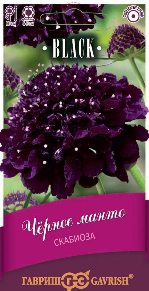 Крупноцветковая скабиоза — неприхотливое однолетнее растение из семейства Ворсянковых. Стебель прямой, разветвляющийся, высотой до 90 см. Прикорневые листья ланцетно-овальные, крупнозубчатые, стеблевые – супротивные, перисто-раздельные. Мелкие цветки собраны в головчатые соцветия диаметром 5-6 см. Соцветия темно-фиолетовые, махровые, на длинных прочных цветоносах, что особенно ценно для цветочных аранжировок. Предпочитает солнечнее места с плодородной рыхлой почвой. Размножают семенами: посев на рассаду — в марте; в открытый грунт — в апреле-мае, выдерживая расстояние между растениями 35-40 см. Идеально подходит для клумб, рабаток. В срезке стоит очень долго. Отлично переносит пересадку даже в цветущем состоянии.
