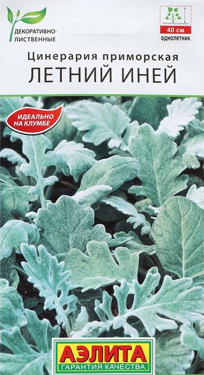 Декоративно-лиственный летник с очень красивыми листьями, которые покрыты белым войлоком, словно инеем. В южных регионах может выращиваться как многолетник. Растение крепкое, компактное, высотой до 40 см. Сохраняет декоративность весь сезон, вплоть до первых заморозков. Цинерария прекрасно вы глядит в бордюрах, цветниках. Отлично смотрится в букетах. Подходит для выращивания в вазонах и кашпо.