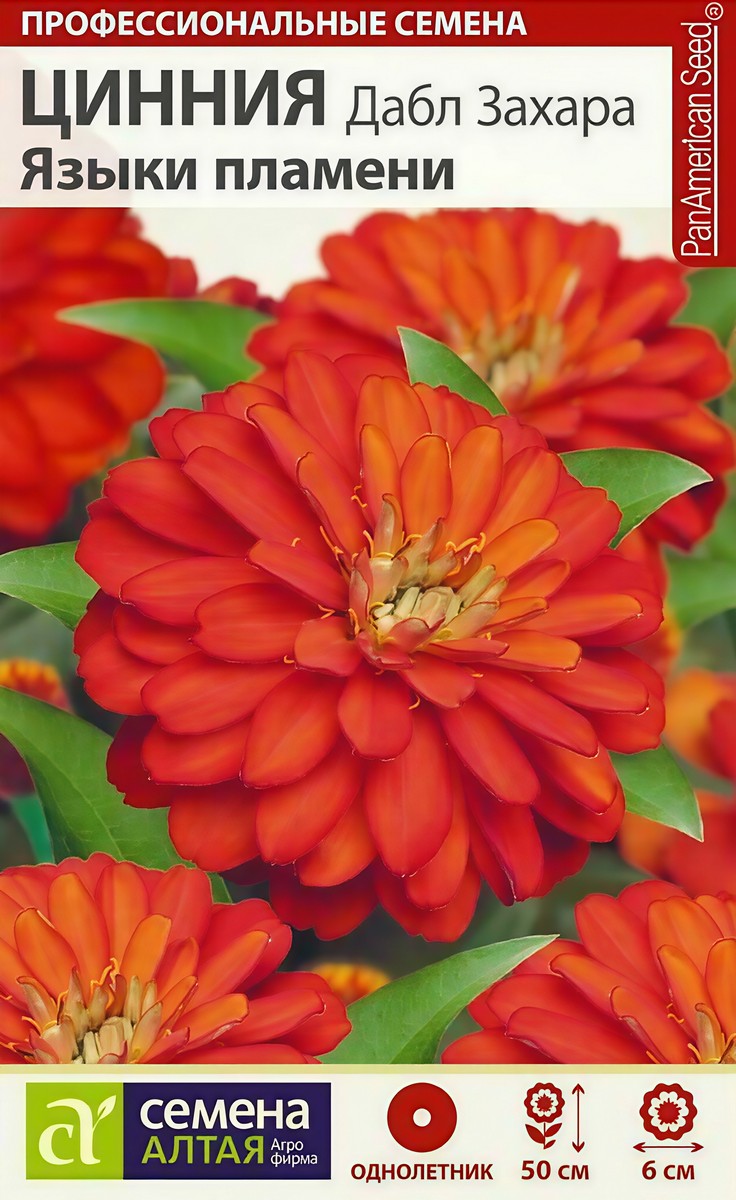 Цинния Дабл Захара Языки пламени, 6 шт.