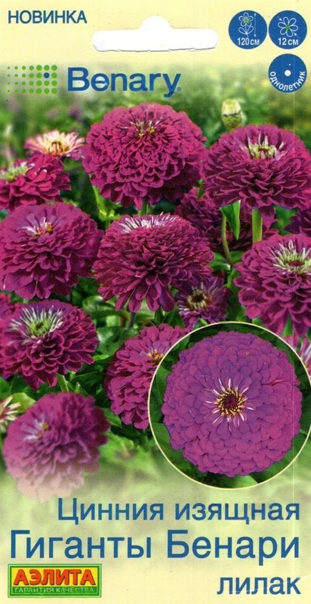 Цинния Гиганты Бенари лилак, 7 шт.