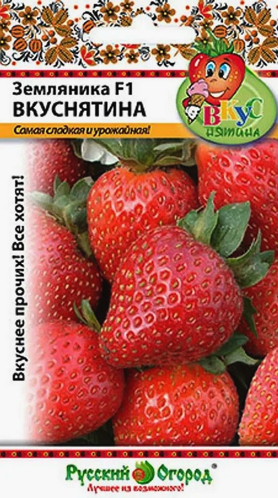 Крупноплодная ремонтантная земляника с великолепными вкусовыми качествами. Плодоносит непрерывно с июня до заморозков. Дает прекрасные урожаи в любом регионе России. Кусты высотой 25-30 см, отличаются хорошей силой роста и устойчивостью к болезням. Ягоды плотные, вкусные, очень сладкие, 2-3 см в диаметре. Идеально подходят для употребления в свежем виде, приготовления десертов, консервирования и заморозки. Растение очень декоративное, может выращиваться в горшечной культуре. Посев. Выращивается через рассаду. Семена сеют поверхностно на увлажненную и слегка уплотненную почву без заделки. Сверху накрывают стеклом или пленкой до появления массовых всходов. В фазе 1-2 настоящих листьев сеянцы пикируют в горшочки. Высадку рассады в открытый грунт проводят в фазе 5-6 настоящих листьев. Необходимы регулярные поливы, прополки, рыхления и подкормки.