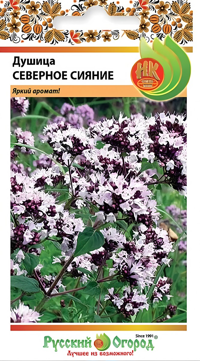 Пряно-ароматический лекарственный многолетник. Растение прямостоячее, высотой до 70 см. На многочисленных стеблях расположено множество небольших обратнояйцевидных или удлиненно-овальных листочков светло-зеленого цвета с ярким ароматом и горьковатым вкусом. В период цветения растение очень декоративно из-за многочисленных розово-сиреневых цветков. Сорт отличается высокой зимостойкостью, засухо- и болезнеустойчивый. Содержит эфирные масла, витамин С и микроэлементы, обладает успокаивающим, обезболивающим и антисептическим действием, помогает при бронхитах. Сухие и свежие соцветия используют для маринования овощей и фруктов, ароматизации напитков, мучных изделий, растительного масла. Листья в свежем и сухом виде добавляют в мясные и овощные блюда, в салаты и чай. Душица предпочитает солнечные участки с питательным грунтом без застоя воды. Не любит засушивание почвы. Посев семян на рассаду в марте или прямым посевом под зиму или в мае. Глубина заделки семян 1 см. Всходы появляются через 10-15 дней при t° +20-+22