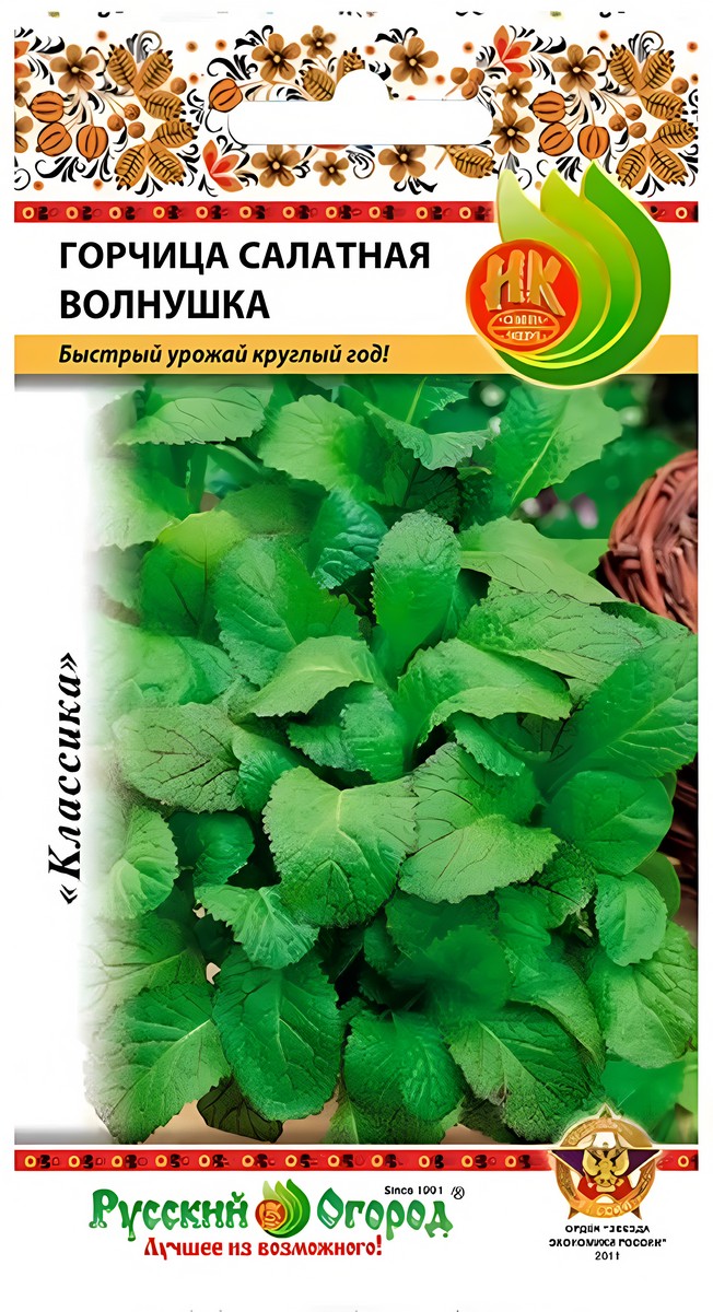 Полезная, ароматная приправа с высокими вкусовыми качествами добавит пикантность и небольшую остроту приготовленному блюду. Свежая зелень горчицы приятного горчичного вкуса, содержит много витаминов и минералов. Растение однолетнее, неприхотливое в уходе. Холодостойкое. Сорт скороспелый (период от всходов до готовности зелени 25-30 дней) Розетка листьев крупная, прямостоячая, слегка раскидистая. Используют в качестве гарниров к мясным блюдам, для приготовления бутербродов, салатов. Сорт предназначен для выращивания в открытом и защищенном грунте. Хорошо растет на любых почвах, требователен к влаге (при ее недостатке листья становятся грубыми, вкус ухудшается). К уборке приступают, когда растения достигнут высоты 5-7 см. Горчицу срезают ножницами или выдергивают с корнями. Высевают рядовым способом на расстоянии 10-15 см (глубина заделки семян до 1 см), в фазе 2-3-х листьев прореживают, оставляя между растениями 6-8 см.