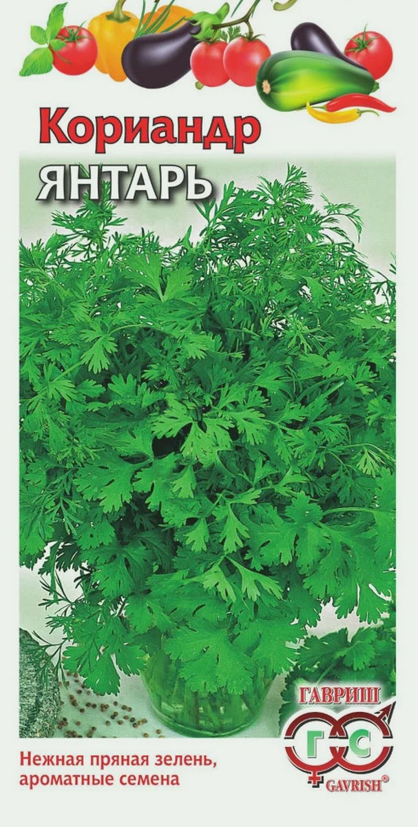 Очень ценное и полезное однолетнее растение. Подходит для выращивания в домашних условиях и на грядках. Урожай зеленой массы формируется за 40-45 дней после всходов, до созревания семян – 85-90 дней. Растения хорошо облиственные, к началу цветения вырастают до 60-70 см. Прекрасный аромат и вкус делают кориандр незаменимым ингредиентом во многих блюдах. Используется для приготовления салатов и добавления в различные соусы и заправки. Обладает лекарственными свойствами. Хороший медонос.