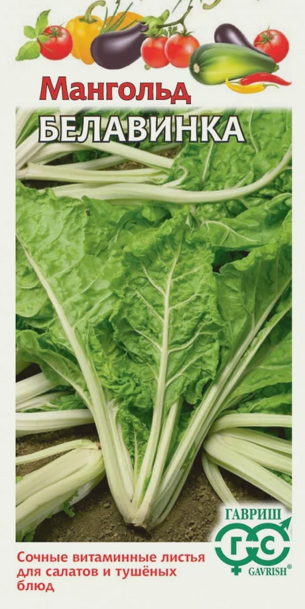 Смесь среднеспелых сортов – Алый, Невеста, Рубин. Начало хозяйственной годности через 40 дней после всходов, до начала массовой уборки – 80-90 дней. Листья длиной 20-30 см. Масса продуктивной части одного растения – 450-1200 г. Мангольд богат витаминами и приятен на вкус. В пищу используют как листья, так и сочные, мясистые черешки. Возможен рассадный способ культивирования – семена на рассаду сеют в середине апреля, высаживают на постоянное место с середины мая. Мангольд хорошо удается на легких, заправленных органическими удобрениями, нейтральных по кислотности почвах.