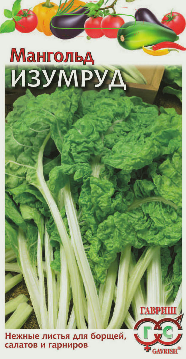 Смесь среднеспелых сортов – Алый, Невеста, Рубин. Начало хозяйственной годности через 40 дней после всходов, до начала массовой уборки – 80-90 дней. Листья длиной 20-30 см. Масса продуктивной части одного растения – 450-1200 г. Мангольд богат витаминами и приятен на вкус. В пищу используют как листья, так и сочные, мясистые черешки. Возможен рассадный способ культивирования – семена на рассаду сеют в середине апреля, высаживают на постоянное место с середины мая. Мангольд хорошо удается на легких, заправленных органическими удобрениями, нейтральных по кислотности почвах.