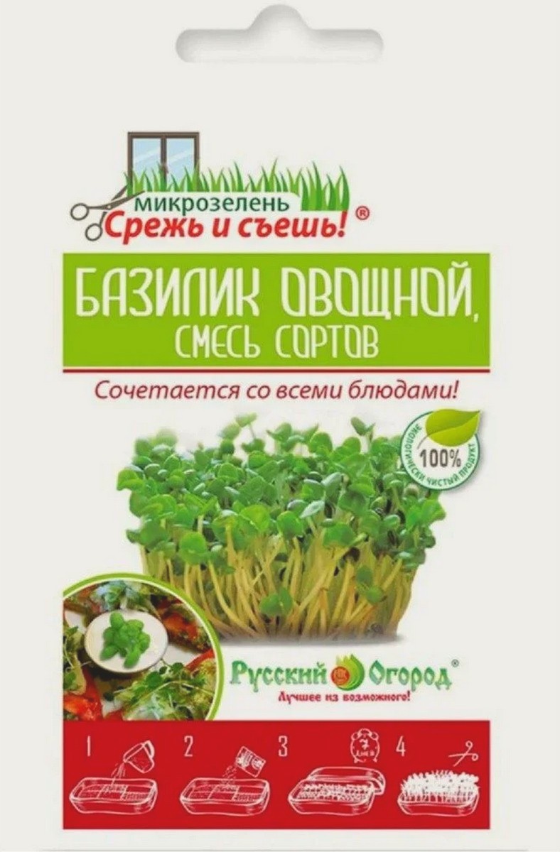 Микрозелень Базилик овощной, смесь сортов, 10 г Русский огород