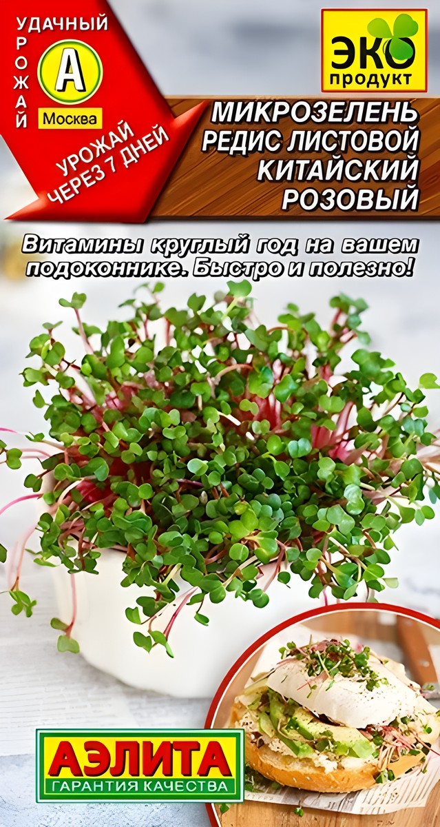 -----Микрозелень Редис листовой Китайский, розовый, 5 г