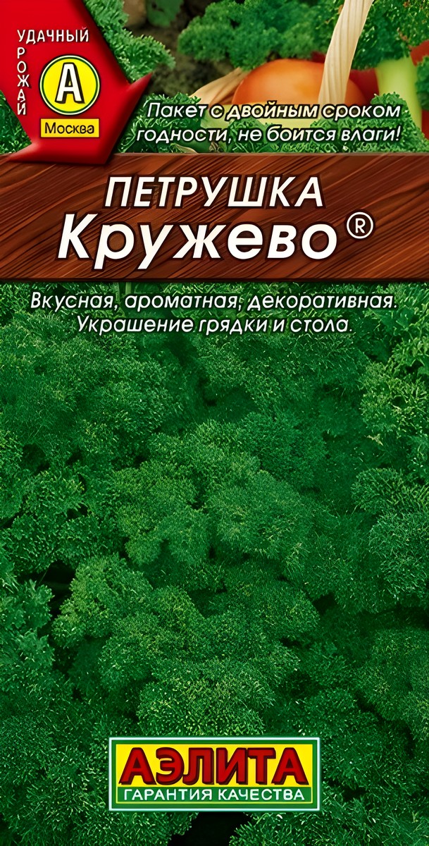 Скороспелый сорт, период от всходов до технической спелости 55-60 дней. Урожайность высокая, более 4 кг/м2 за сезон. Растения высотой 25-27 см, масса одного растения 70-90 г. Листья сильно гофрированные, с приятным ароматом, хорошо отрастают после срезки. Петрушка кудрявая Кружево богата витаминами и полезными минералами, нормализует обменные процессы в организме. Используется в свежем виде, подходит для сушки и замораживания. Очень декоративна, используется для украшения различных блюд.