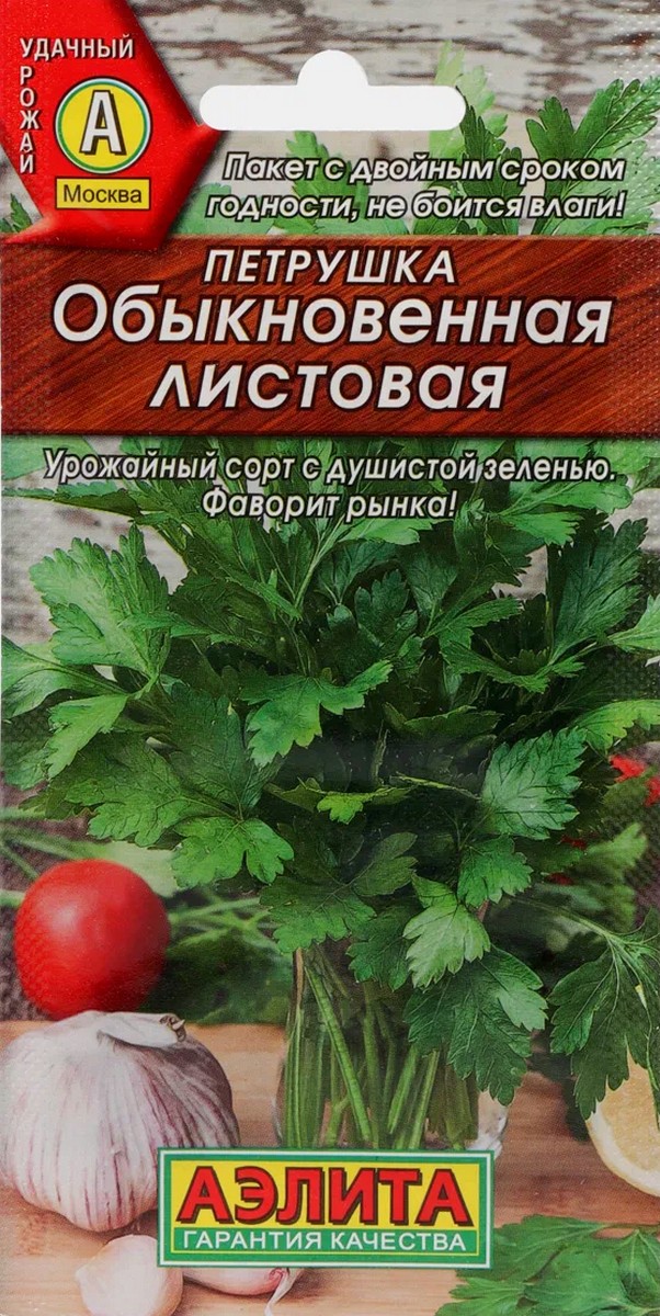 Универсальный позднеспелый сорт. Формирует корнеплод. Период от всходов до технической спелости 90-140 дней. Лист крупный, темно-зеленый, треугольной формы. Зелень хорошо отрастает после срезки. Отличается холодостойкостью, хорошо зимует и рано весной даёт свежую зелень. Урожайность: Зелени 2,8-4,9 кг/м2. Универсальное использование зелени и корнеплода. Петрушка предпочитает рыхлую, плодородную, нейтральную или немного кислую почву. Успешно растет как на солнечных, так и на легко затененных местах. Петрушка, особенно листовая, отзывчива на поливы. Корневая петрушка нуждается в поливах, в основном, в конце августа – в период налива корнеплодов.
