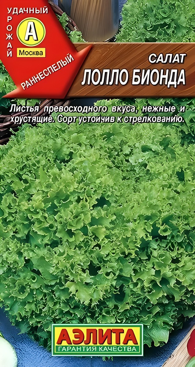 Среднеспелый листовой сорт с высокими декоративными и вкусовыми качествами. Подходит для выращивания в защищенном и открытом грунте. От всходов до получения первой нежной зелени проходит 40-45 дней. Растения формируют крупную, средней плотности розетку, с очень вкусными, сочными и хрустящими листьями. Они отлично подойдут для приготовления свежих салатов, бутербродов и украшения блюд. Сорт устойчив к стеблеванию. Хорошо хранится после срезки, не грубеет и не горчит.