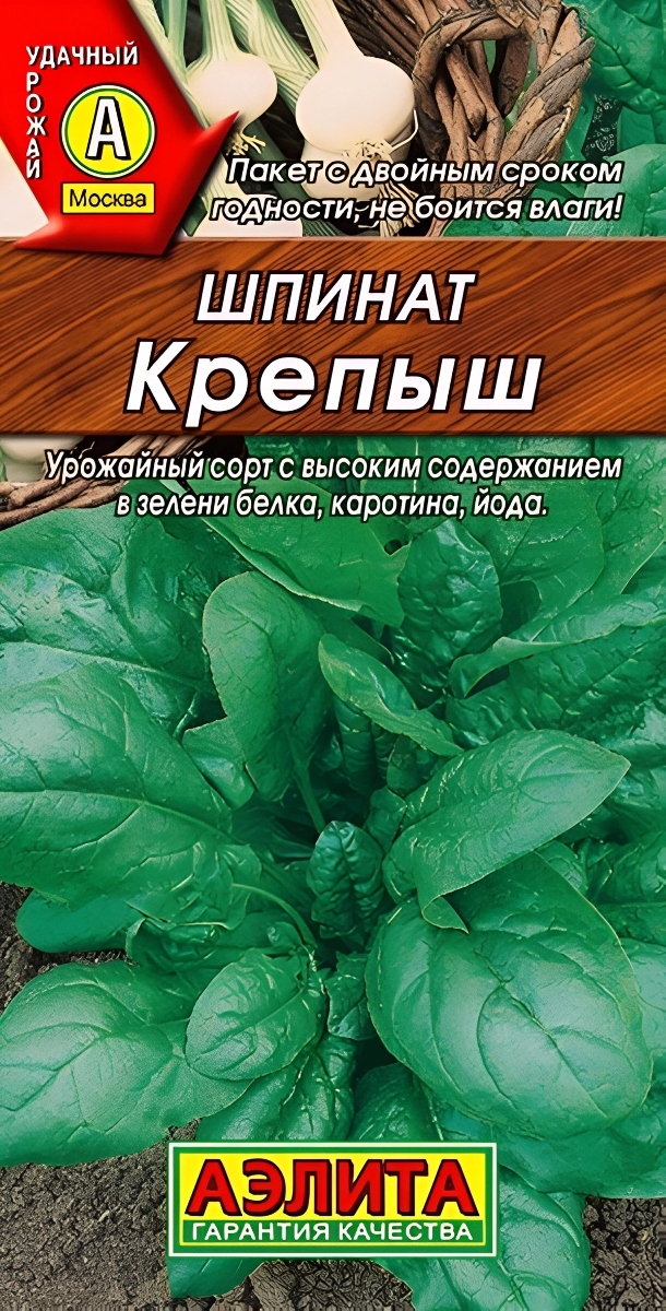 Настоящий рекордсмен урожайности в ассортименте сортов шпината. Высокая продуктивность обусловлена быстрым развитием растений и очень крупными размерами листьев. Они собраны в густую розетку диаметром более 25-30 см. Период от всходов до потребительской годности 45-55 дней. Листья гофрированные, нежные, сочные. При своевременной срезке молодой зелени растения долго не переходят к цветению. Сорт универсального назначения: подходит для самой разнообразной сезонной кулинарии, украшения блюд и замораживания на зиму. Перед посевом рекомендуем замочить семена в теплой воде на сутки, 3-4 раза меняя воду. В фазе двух-трех настоящих листьев сеянцы прореживают. Для получения более раннего урожая возможен подзимний посев сухими семенами в конце октября – начале ноября.