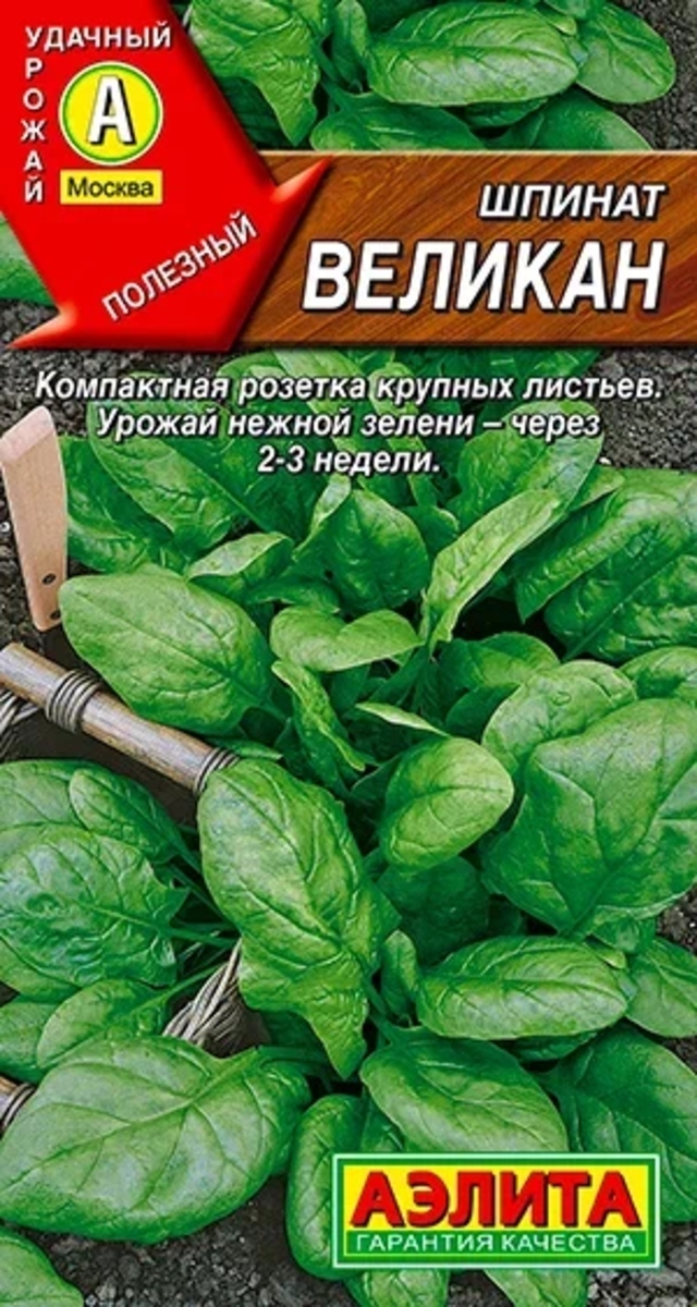 Настоящий рекордсмен урожайности в ассортименте сортов шпината. Высокая продуктивность обусловлена быстрым развитием растений и очень крупными размерами листьев. Они собраны в густую розетку диаметром более 25-30 см. Период от всходов до потребительской годности 45-55 дней. Листья гофрированные, нежные, сочные. При своевременной срезке молодой зелени растения долго не переходят к цветению. Сорт универсального назначения: подходит для самой разнообразной сезонной кулинарии, украшения блюд и замораживания на зиму. Перед посевом рекомендуем замочить семена в теплой воде на сутки, 3-4 раза меняя воду. В фазе двух-трех настоящих листьев сеянцы прореживают. Для получения более раннего урожая возможен подзимний посев сухими семенами в конце октября – начале ноября.