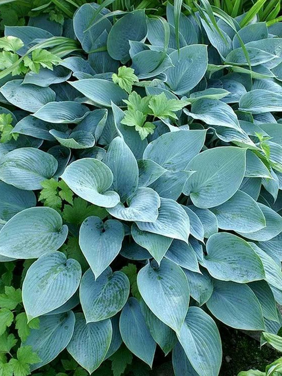 Хоста Блю Кадет - высота куста 75 см, ширина до 40 см, Тёмно-зелёные листья покрыты плотным слоем голубого инея. Особую декоративность кусту придаёт сердцеобразная форма листьев. Цветок Блуе Кадет воронкообразный яркого лавандового оттенка, составляет длинные плотные кисти на стебле высотой до 55 см. Цветение происходит в середине лета. Сажать хосту лучше в легкой тени, которая будет держаться весь день. В конце лета листья становятся темно-зелеными, даже, когда кустарник растет на открытом месте. Сорт хорошо подойдет для выведения других новых сортов, от него уже было выведено несколько разновидностей с голубым оттенком листвы. Пересадку переносит легко. Молодые растения влаголюбивы, но избыточного увлажнения не переносят.