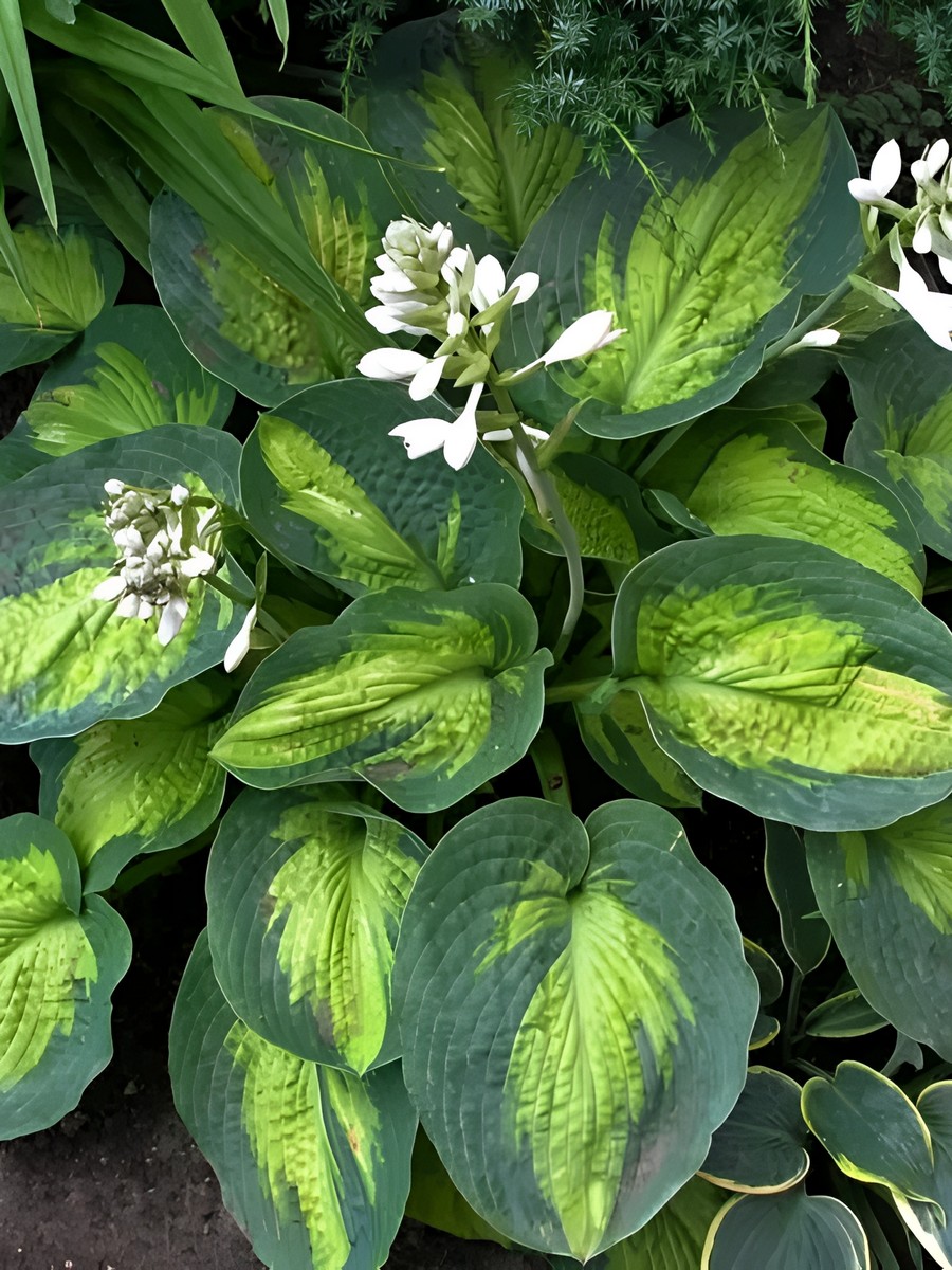 Хоста Шарман – крупный сорт с необычайно декоративными яркими листьями! Центральная их часть насыщенно жёлтого цвета с салатовым оттенком, а крайняя обводка резко переходит в глянцевую зеленую окраску. Высота хосты 60 см. При этом листья имеют не столь крупные габариты: 12 см-16 см. Чем более яркое место для посадки вы ему выберете – тем насыщеннее будет его окраска. Цветение с июля по август белыми цветами!