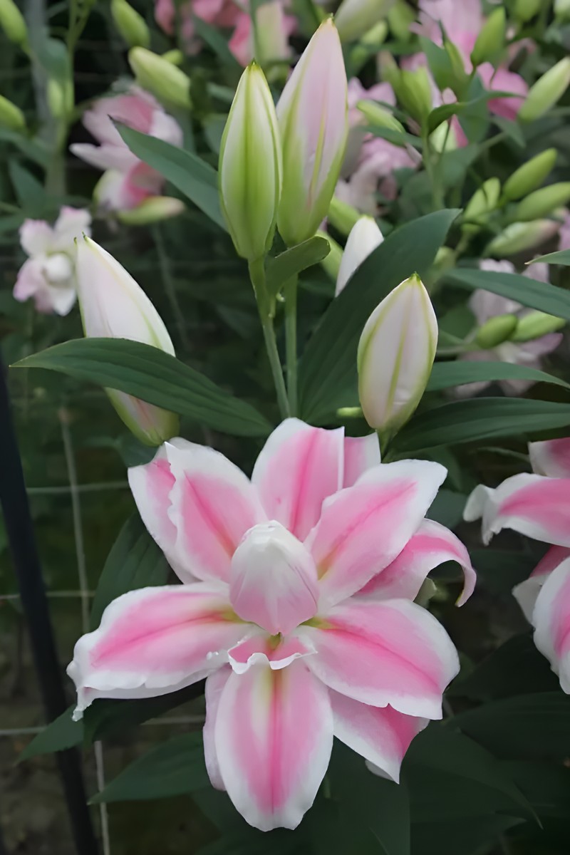 Лилия азиатская Марлен это один из самых удивительных представителей многоцветковых гибридов, получен в результате скрещивания азиатских лилий и лонгфлориумов. Высота растения достигает 90-100 см, что делает его отличным выбором для создания ярких композиций. Особенностью лилии является ее необычное цветение. На каждом цветоносе огромное количество бутонов, до 100 шт. Эта особенность сорта делает его невероятно популярным среди садоводов. Причина - необычная мутация, в результате которой несколько стеблей срастаются вместе с главным побегом, это может происходить уже на второй год. Цветки направлены вверх и в стороны, диаметром до 18 см. Окраска лепестков красивого розового цвета. Аромат тонкий, выражен не ярко. Лилия цветет в июне-июле. Лилия Марлен неприхотлива, отличается хорошей морозостойкостью, быстро и легко размножается, хорошо приспосабливается к неблагоприятным условиям. Лучше всего растет на нейтральных или слабокислых и хорошо удобренных почвах.